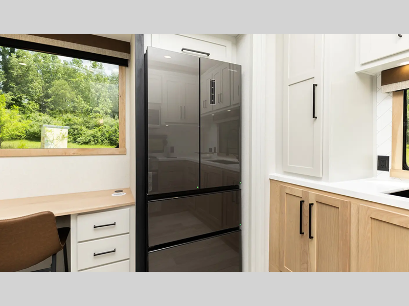 Sleeps 4 Slides 3 Length 41 ft 6 in Ext Width 8 ft 5 in Ext Height 13 ft 4 in Hitch Weight 1410 lbs GVWR 13410 lbs Dry Weight 11809 lbs Cargo Capacity 1601 lbs Fresh Water Capacity 50 gals Grey Water Capacity 156 gals Black Water Capacity 54 gals Tire Size 16" Furnace BTU 40000 btu Available Beds King Refrigerator Type Stainless Steel 12V Refrigerator Size 16.2 cu ft Cooktop Burners 3 Number of Awnings 1 LP Tank Capacity 30 lbs Water Heater Capacity 60000 gal Water Heater Type On Demand Tankless AC BTU 30000 btu TV Info LR 50" Flat Screen TV Awning Info 21' Electric with LED Light Strip Axle Count 2 Washer/Dryer Available Yes Number of LP Tanks 2 Shower Type Standard Similar Floorplans